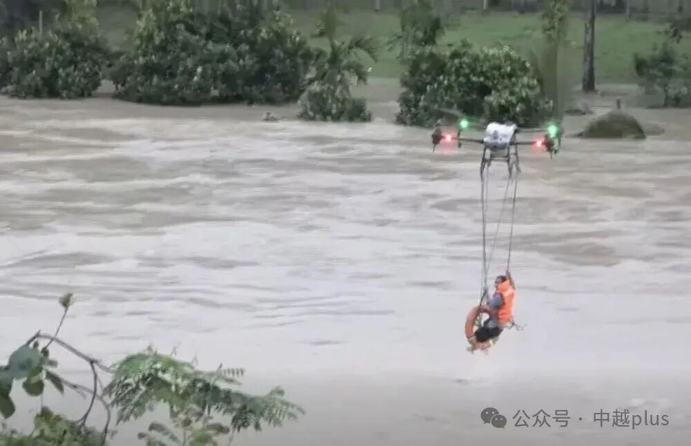 为全力抢救被困群众和提供紧急补给,越南军方调动装甲车深入灾区,为解救受困人员,无人机派上了用场。